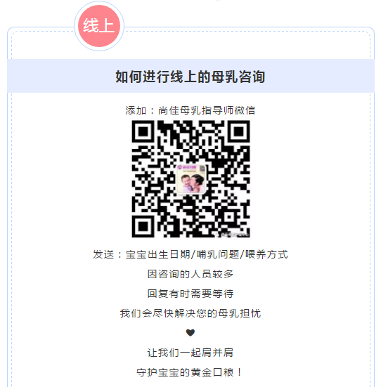 尚佳陪伴哺乳媽媽們度過(guò)這段特殊時(shí)期,特別開(kāi)通了線(xiàn)上公益咨詢(xún),運用積累多年的專(zhuān)業(yè)知識,讓哺乳期的媽媽們足不出戶(hù),也能守護寶寶最重要的口糧。     在這特殊時(shí)期,如出現以下:奶水不足、漲奶、硬塊、小白點(diǎn)、乳頭混淆等哺乳問(wèn)題,我們將為哺乳媽媽們提供母乳指導咨詢(xún)。