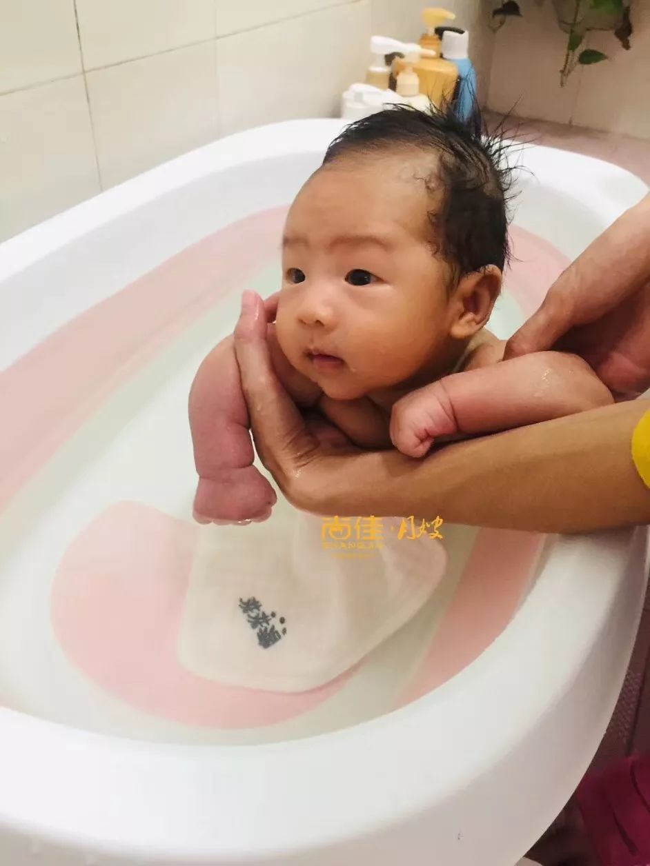 洗身體:幫寶寶脫衣服,先用溫水拍一下寶寶的胸部,寶寶下水洗時(shí),注意手滑,一定要把手托住寶寶手腋窩下,頭部頸部用手婉托住,將寶寶輕輕的放入水中,先下寶寶的腳--屁股在水中慢慢晃動(dòng),依次洗腋下--雙臂--手--頸部--前胸--腹股溝--雙腿--腳--后背