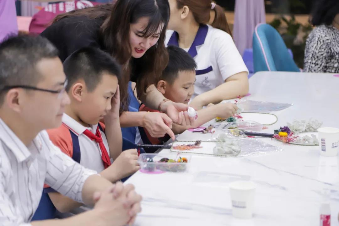 一個(gè)個(gè)素色的團扇,在孕媽們和寶貝們溫柔細膩地手中變得五彩繽紛。